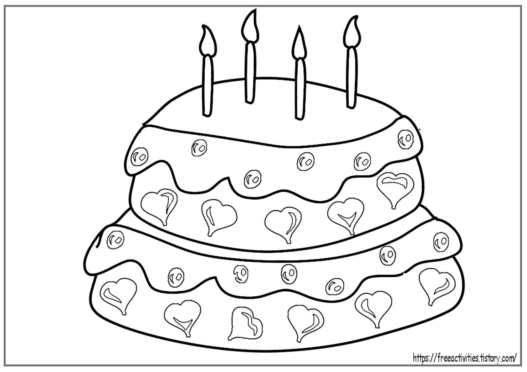 생일과 관련된 컬러링 도안 두 번째로 이번에는 생일 케익 그림 5장입니다.