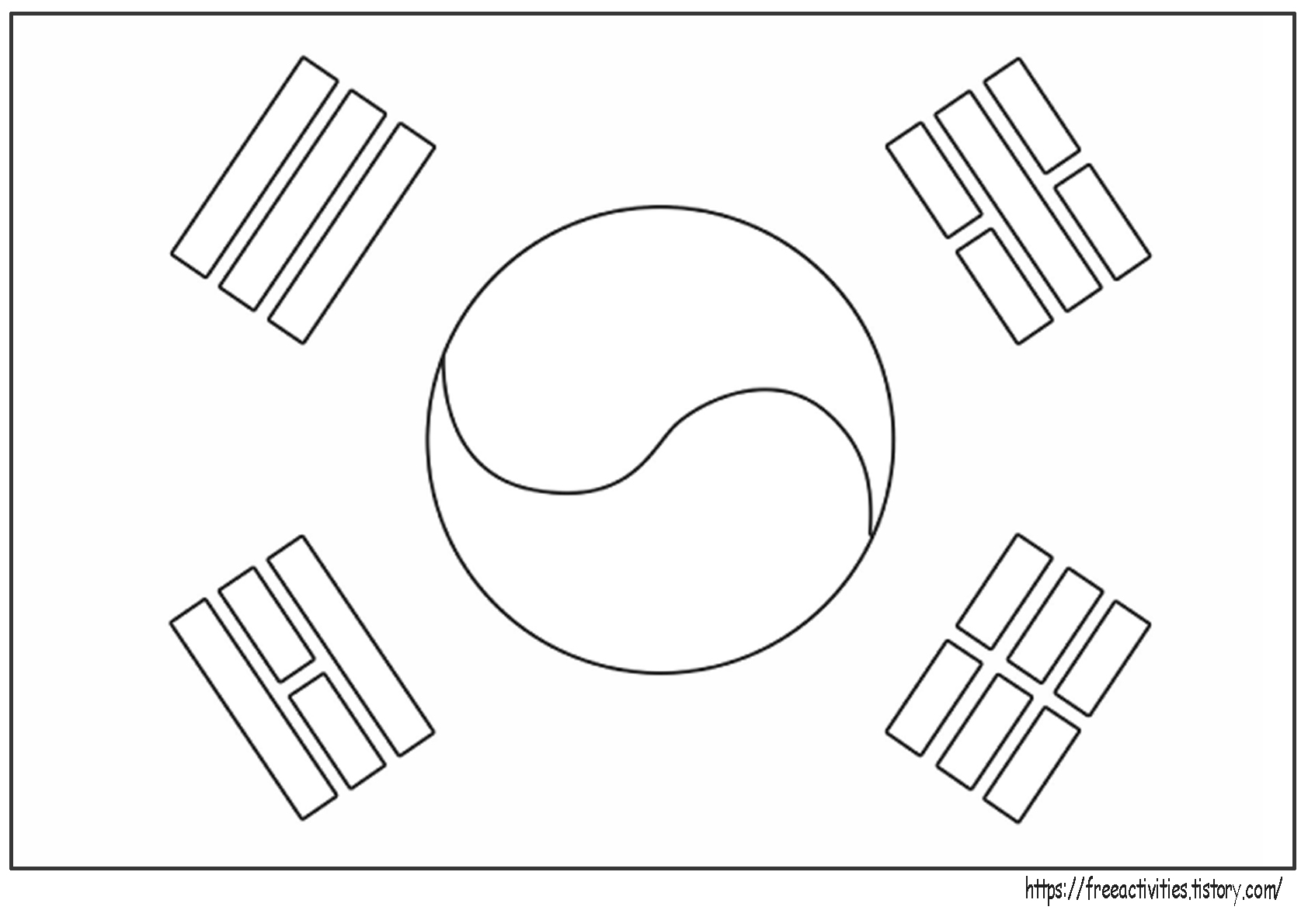 예전부터 국기 컬러링 도안을 만들어야겠다고 생각했는데 드디어 때가 된 것 같습니다. 우선 대한민국 국기와 인공기를 시작으로 미국, 영국, 캐나다, 중국, 일본 등 친숙한 국가들 위주로 컬러링 도안을 만들 예정입니다. 반응이 좋으면 온갖 국기를 만들어 볼 예정입니다.
