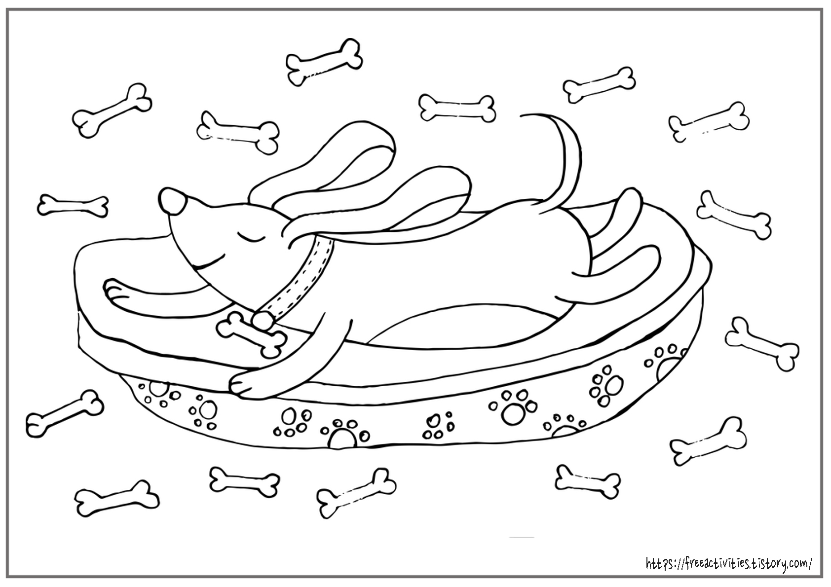 어린이용 강아지 컬러링 도안 첫 번째(5장) 입니다.