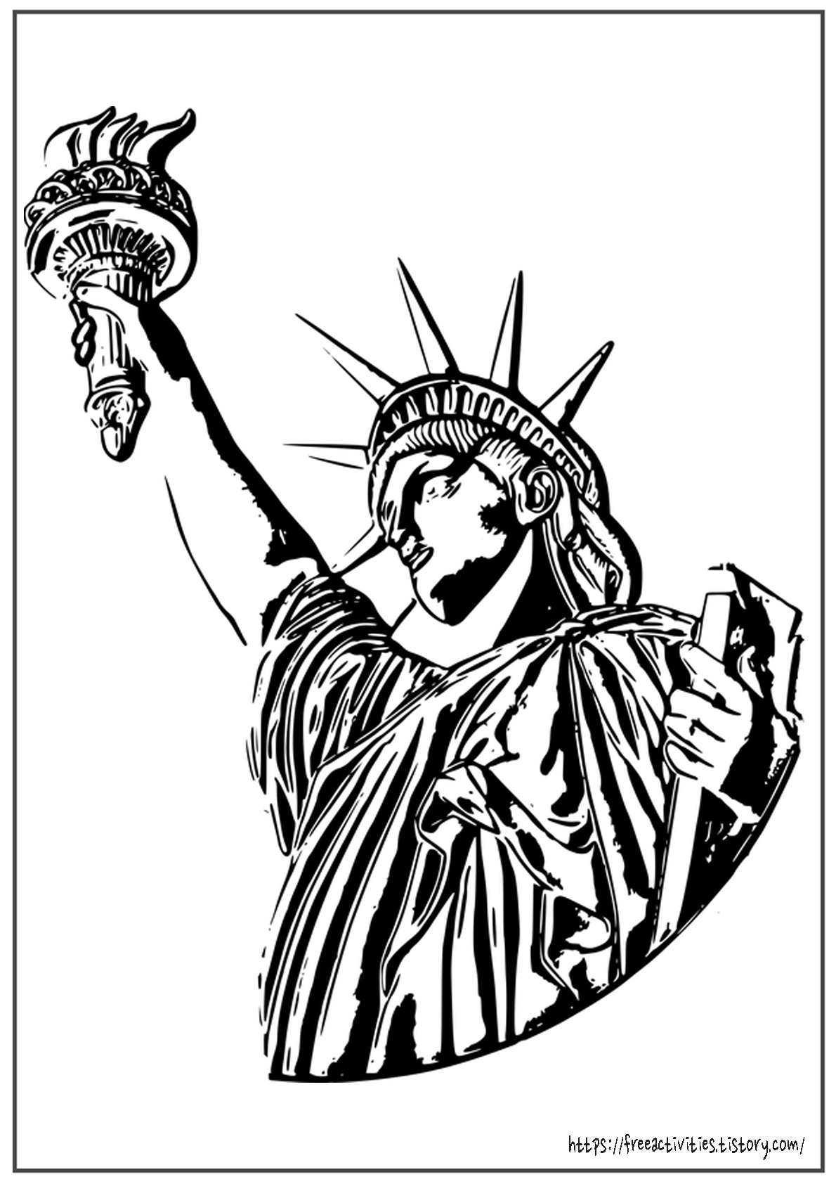 자유의 여신상(Statue of Liberty) 컬러링 도안들입니다. 이것들도 고학년이나 성인들에게 적합한 수준으로 생각됩니다. 그런데 네 번째 그림은 표정을 일부러 이상하게 그렸나 봅니다.
