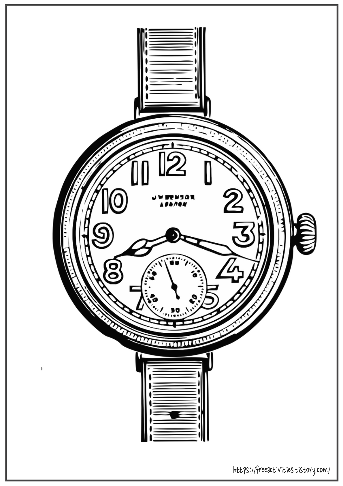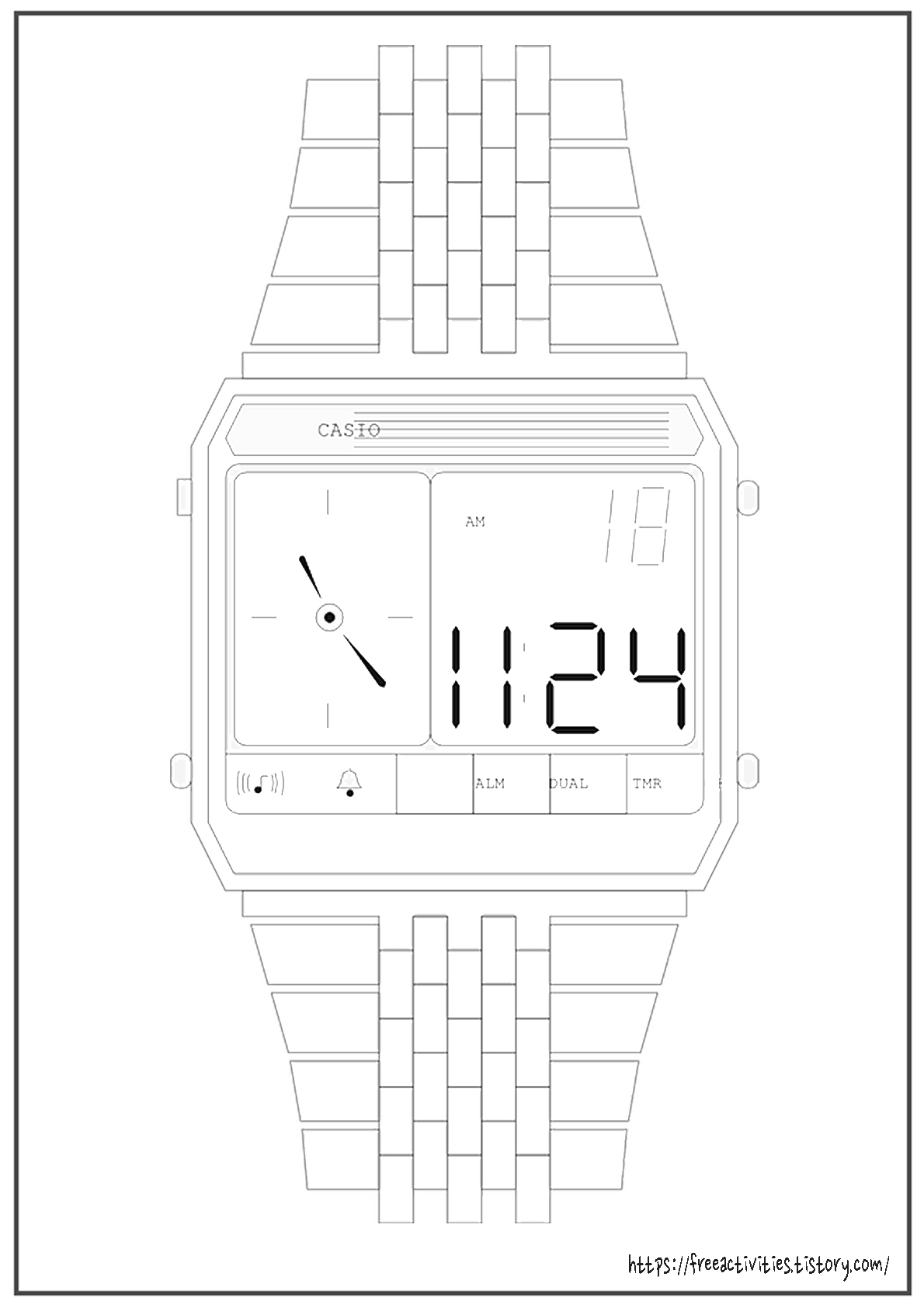 새로운 주제로 전자제품이나 기계류 카테고리를 만들었습니다. 그 첫 번째로는 손목시계 컬러링 도안을 준비했습니다.