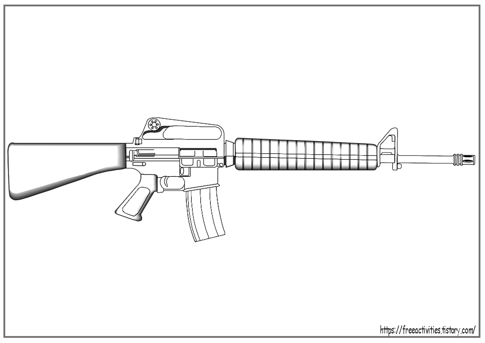 밀리터리 관련 도안으로 소총 컬러링 도안을 준비했습니다. 총을 컬러링 할 사람은 별로 없지 않을까 싶으면서도 지금까지 총과 관련된 컬러링 도안은 보지 못해서 한 번 만들어 보았습니다. 군대에서 썼던 M16 소총이 보이네요. 저라도 심심할 때 색칠해 봐야겠습니다.