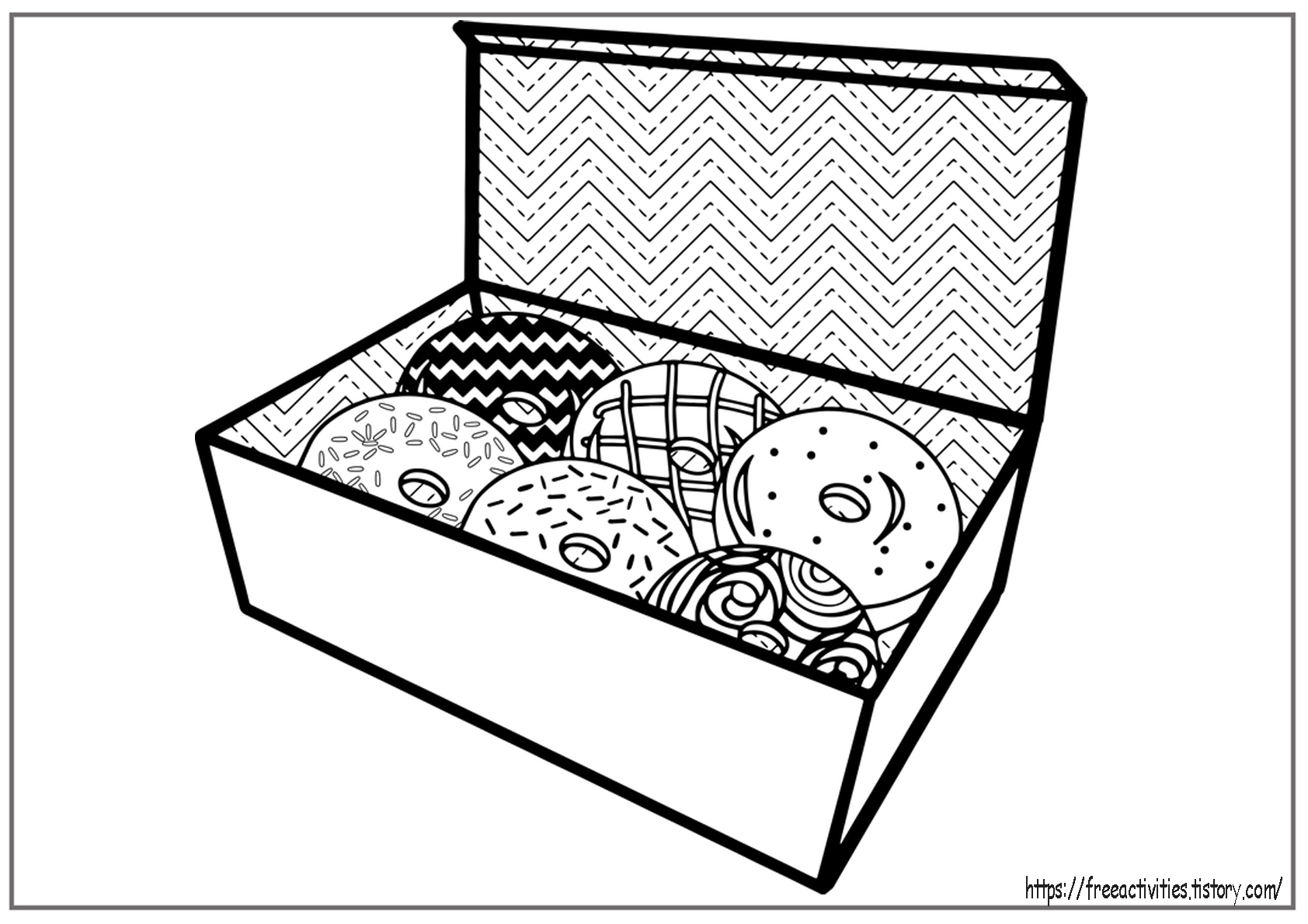 음식을 주제로 한 컬러링 도안으로 이번에는 도넛을 준비했습니다. 밤에 만들고 있으니 역시 배가 고파지네요...