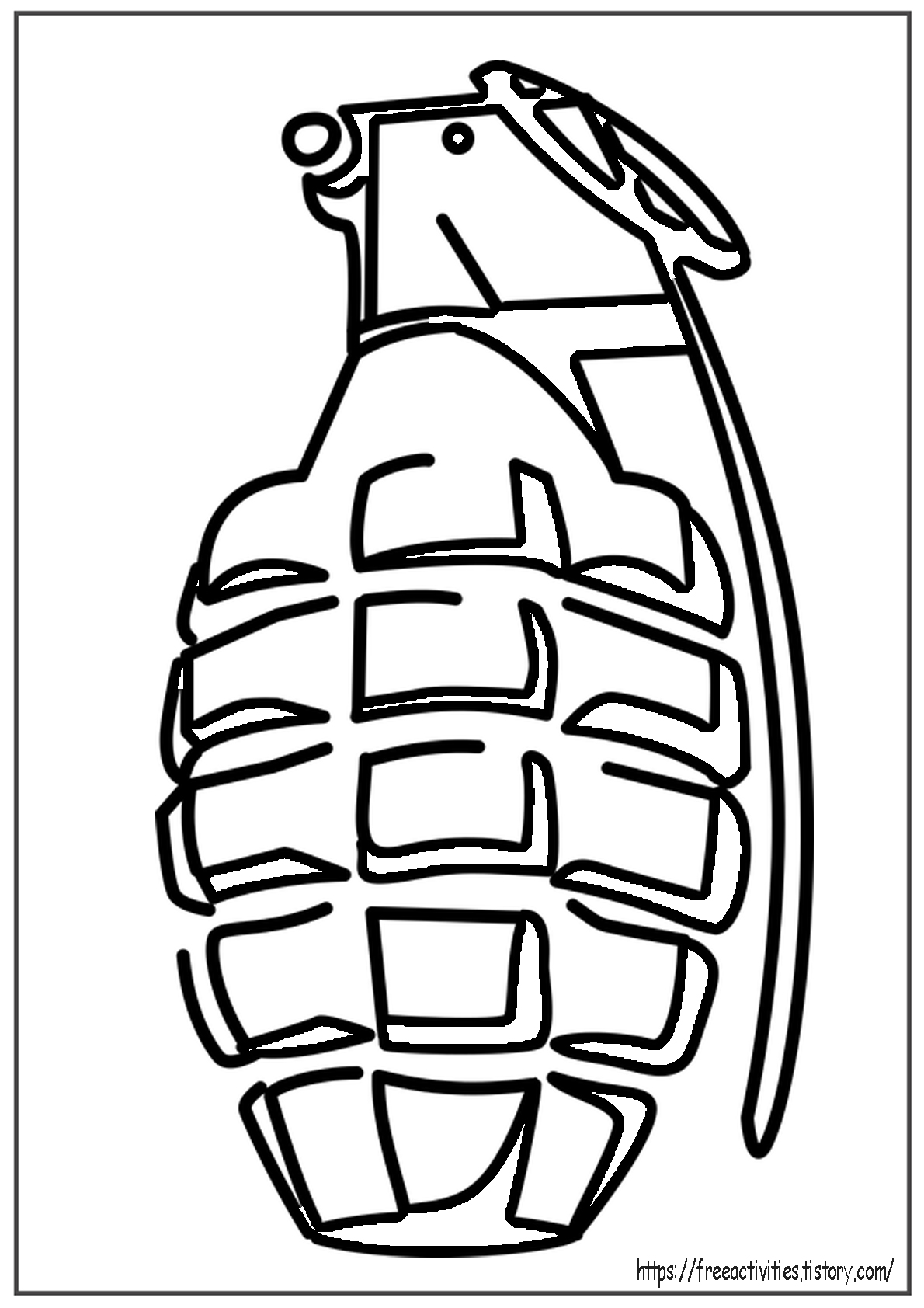 지난번 소총, 권총 컬러링 도안을 올리며 과연 이런 도안도 필요한 분들이 있을까 생각했지만 예상외로 다운로드하시는 분들이 있었습니다. 심지어 'AK소총 도안'과 같은 검색어로 유입된 것도 있었습니다. 거기에 힘 입어 이번에는 수류탄 컬러링 도안을 준비했습니다. 요즘 수류탄은 저렇게 울퉁 불퉁하지는 않지만 그래도 수류탄 하면 저렇게 생긴 모양이 떠오르나 봅니다.